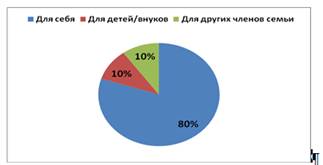 Далее логичным было узнать, для кого приобретается данный продукт. И из всего количества опрошенных 80% респондентов покупают творог для себя и по 10% для детей и других членов семьи.