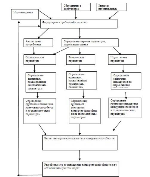 Для оценки конкурентоспособности товаров (продукции) производственно-технического назначения может быть предложена следующая схема (рис.1.1.)[12]: