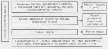 Инфраструктура рынка — это совокупность правовых форм, опосредствующих движение товаров и услуг, акты купли-продажи, или совокупность институтов, систем, служб, предприятий, обслуживающих рынок и выполняющих определенные функции по обеспечению нормального режима его функционирования[4]