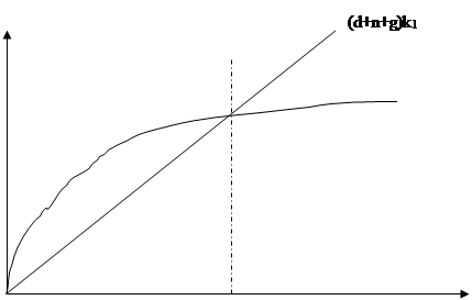 Р. Солоу исходит из того, что необходимым условием является равенство совокупного спроса и совокупного предложения. При этом совокупное предложение в его модели определяется на основании производственной функции Кобба-Дугласа, выражающей отношение функциональной зависимости между объемом производства, с одной стороны, и используемыми факторами и их взаимной комбинацией – с другой.