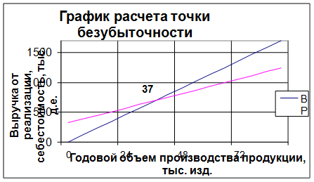 Тот объем производства продукции, который будет соответствовать точке пересечения зависимостей, и составит критический объем производства, т.е. определит точку безубыточности.