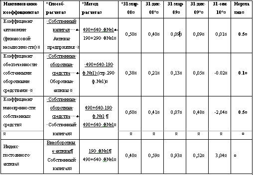 Таблица 2.6 – Система коэффициентов для расчета финансовой устойчивости предприятия