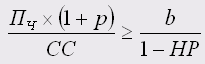 Эти формулы предназначены для случаев, когда НК * РСС < b, т.е внутренние темпы роста предприятия недостаточны для сохранения своей доли рынка. В этом случае совокупный рычаг необходимо повысить до уровня, описываемого последней формулой. Если же ВТР>b, то достаточно следить за тем, чтобы СР не превышал своего максимального значения.