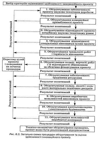 1) вивчення доцільності інноваційної програми (за витратами і запланованим прибутком з урахуванням можливих ризиків);