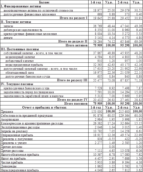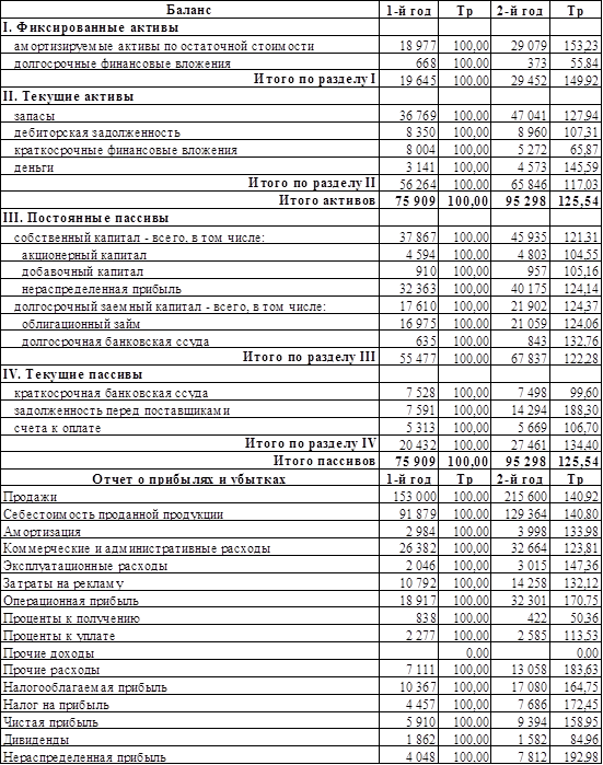 Исходя из первоначальный данных, актив баланса составил на конец 1-го года 75 909 тыс. долл. и на конец 2-го года 95 298 тыс. долл.