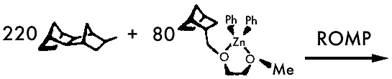 Органическими компонентами для синтеза блоксополимера могут служить норборненовые мономеры, в один из которых внедряют ионы золота, серебра, кадмия или цинка. Норборнены, будучи циклическими соединениями с двойной связью, отличаются высокой реакционной способностью. Под действием катализатора они подвергаются перегруппировке: 5-членный цикл молекулы раскрывается и образуется линейный полимер (такую реакцию называют метатезисом с раскрытием цикла).