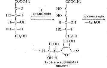 Аскорбиновая кислота является производным моносахарида L-ряда. Это строение подтверждено синтезами, в которых исходными веществами являются L-сорбоза (наиболее доступна) или L-гулоза, превращающиеся в 2-кето-Ь-гуло-новую кислоту—ключевой полупродукт в синтезе аскорбиновой кислоты: