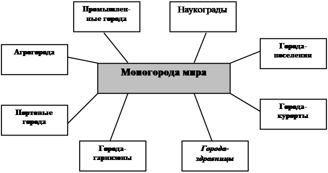 Таким образом мы рассмотрели все типы моногородов мира, и России в частности.