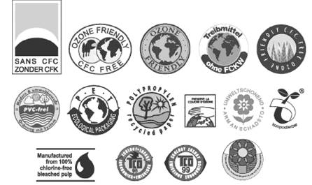 У багатьох країнах світу існує науково обґрунтоване та стандартизоване маркування екологічно чистої продукції. Наприклад, це квітка із зірочками в Європейському Союзі, «Блакитний янгол» у Німеччині, або «Білий лебідь» у Скандинавських країнах, «Еко-знак» у Японії тощо.