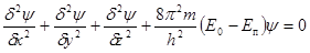 В 1925 г. Шрёдингер предположил, что состояние движения электрона в атоме должно описываться уравнением стоячей электромагнитной волны. Он получил уравнение, которое энергию электрона связывает с пространством Декартовых координат и так называемой волновой функцией , которая соответствует амплитуде 3-х мерного волнового процесса: