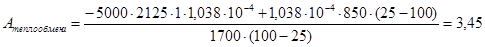 Скорость подачи реагента А составляет 6,23 . Температура на входе 25 . Плотность раствора  . Тепловой эффект реакции 5000 . Для проведения реакции следует поддерживать температуру  , что достигается с помощью теплообменника, диаметр трубок которого d=250 . Расход хладоагента должен быть таким, чтобы его температура не превысила 25 . Коэффициент теплопередачи  . Теплоёмкость смеси реагентов  .
