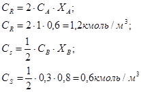 3 Определим концентрации реагентов А и В в реакционной смеси: