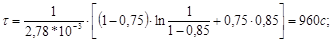 2 Определим время пребывания реакционной смеси в реакторе идеального вытеснения и его объём: