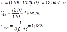 1 Определим время пребывания реакционной смеси в реакторе идеального смешения и его объём: