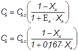1 Из экспериментальной зависимости, представленной в таблице 6, видно, что максимальная степень превращения реагента А достигается только при температуре реакционной смеси, равной 42 . Для этой температуры и будем производить все дальнейшие расчёты.
