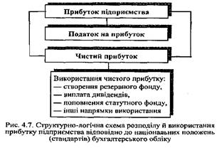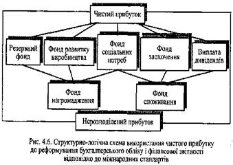 На рис. 4.6 зображено структурно-логічну схему використання чистого прибутку підприємства, до введення національних положень (стандартів) бухгалтерського обліку.