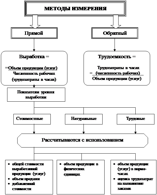 Рис. 2. Методы измерения и показатели уровня производительности труда