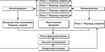 Предусмотрено планирование продаж как по всему предприятию в целом, так и по подразделениям или группам подразделений. Это дает возможность руководителям и менеджерам подразделений составлять планы продаж по своим направлениям. Планы подразделений консолидируются в сводный план продаж по компании, представленный на рисунке 2.