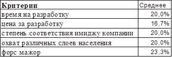 Из рассмотрения мы исключили второй критерий – цена за разработку.