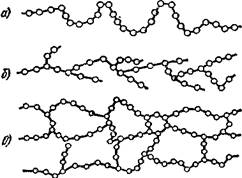 а) – линейная, б) – разветвленная, в) – сетчатая (сшитая).