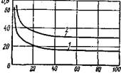 , определяющими вольтамперную или статическую характеристику дуги (1 – для дуги 3 мм; 2 – для дуги 6 мм). Приведенные кривые показывают, что при токе свыше 50 А (наиболее часто применяемых при сварке) напряжение горения дуги почти не зависит от силы тока и определяется длиной дуги.