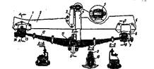Передні ресори прикріплені до балки передньої осі двома стремянками 11, що охоплюють ресору і проходять через отвори в площадках балки передньої осі. Між ресорою і балкою ставиться чавунна прокладка висотою 30 мм.