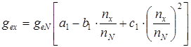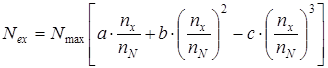 де , , - відповідно розрахункове (біжуче) значення потужності, потужність двигуна на номінальному режимі та максимальна потужність двигуна; , , - відповідно біжуче значення частоти обертання вала двигуна, частота обертання вала двигуна на номінальному режимі та максимальна частота обертання, що відповідає максимальній потужності; , , - відповідно біжуче значення питомої витрати палива, витрати палива на номінальному режимі, та питомої витрати палива в режимі максимальної потужності; a, b, c, a1
