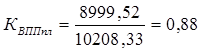 7) Коефіцієнт використання потужності підприємства залежить від планового і базового чистого доходу, оскільки чистий дохід в базовому році менший, то і відповідно коефіцієнт буде меншим (0,84), а в плановому році - 0,88.