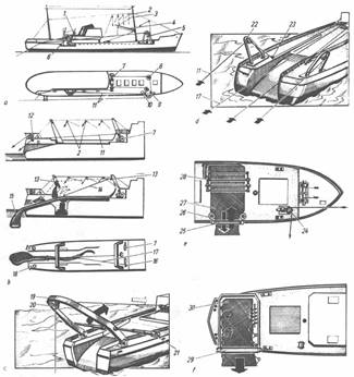 Куттер - судно для ловли рыбы тралом в прибрежных и мелководных районах моря (рис. b). В этом случае речь идет о гладкопалубных судах с большой седловатостью, с расположенными в корме рубкой и машинной установкой. Куттеры имеют длину примерно от 10 до 30 м. Мощность дизельной энергетической установки 22—221 кВт, а вместимость изолированного рыбного трюма для хранения положенной в лед рыбы от 5 до 150 м3. Корпус судна и рубка изготовлялись раньше из дерева: в настоящее время для этого применяют преимущественно сталь, а также армированные стекловолокном сложные эфиры или легкие сплавы. Раньше для куттеров было характерным парусное вооружение. В наши дни паруса, если они еще применяются, служат только для повышения остойчивости судна, так как давление ветра на поверхность паруса может эффективно демпфировать качку.