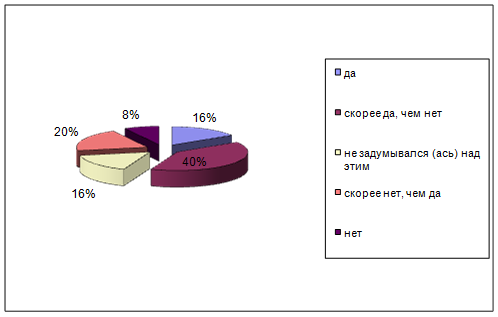 10 человек из 25 опрошенных (40%), ответили, что скорее стали бы покупать чаще сухари СХК, если бы фирменный магазин находился рядом с их домом – это первое место. На втором месте 5 человек (20%), ответившие «скорее нет, чем да». Третье место разделили варианты ответов «да» и «не задумывался (ась) над этим», по 4 человека (16%). На четвертом месте вариант «нет» - 2 человека (8%). См. рис.3.