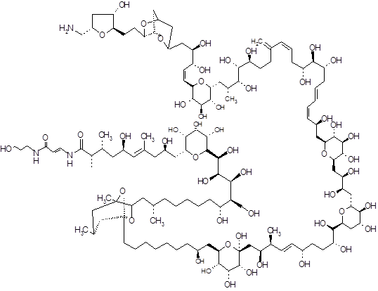 Встановлення будови і стереохімії палітоксину, завершене в 1981р. об’єднаними групами Й.Хірата і Й.Кіші, виявилось визначною подією в біоорганічній хімії. Молекула палітоксину являє собою унікальну структуру, довгий ланцюг якої побудований з ди-, три- і тетрагідрокситетрагідропіранових і фуранових циклів, сполучених насиченими і ненасиченими зв’язками поліолів, на його N-кінці знаходиться первинна аміногрупа, а С-кінець ацильованим залишком -аміноакриламінопропанолу. Палітоксин володіє потужною дією: при внутрівенному введенні мишам його LD50 становить 0,15 мкг/кг, при внутрічеревному -0,4мкг/кг, а для мавп він ще токсичніший- LD50 0,078 мкг/кг. Летальний кінець наступає через 5-30хв. в результаті звуження судин, аритмії, коронарних спазм і зупинки дихання. Цікаво, що в сублетальних дозах палітоксин проявляє високу протипухлинну активність. Механізм дії палітоксину не повністю зрозумілий, проте відомо, що він аналогічно уабаіну, але значно сильніше, зв’язується з Na+, K+ - АТФазами чутливих клітин(нервової тканини, серця, еритроцитів) і утворює в місцях зв’язування пори в цитоплазматичних мембранах, в результаті чого клітини втрачають іони K+ і Са2+ і гинуть.