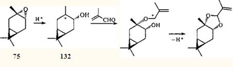 Если атака гомоаллильного иона происходит со стороны ЦПК, это приводит к его раскрытию и в случае карановых производных — к перегруппировкам скелета.