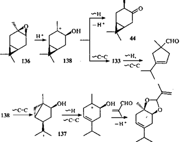 носят констатирующий, а не аналитический характер, поэтому механизмы описанных превращений в них как правило не рассматриваются и не обсуждаются. В последних обзорах, посвященных перегруппировкам терпеноидов, 3,15,16