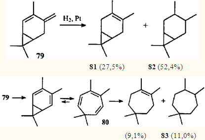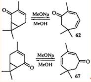 Известные в настоящее время скелетные перегруппировки соединений ряда карана протекают с образованием структур нескольких типов: с бицикло[3.1.0]гексановым, бицикло[3.2.0]гептановым, п
