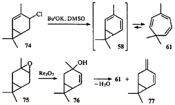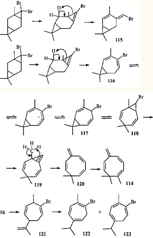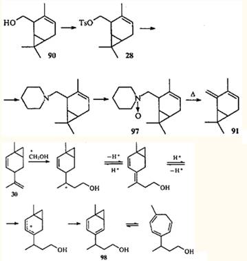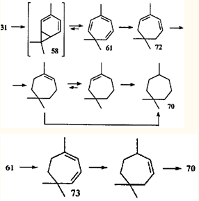 -ментановым и 1,1,4-триметилциклогептановым скелетами. По механизмам перегруппировки классифицируются на ионные, радикальные и согласованные.