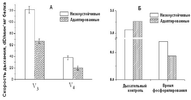 5.1.1 Изучение параметров дыхания и окислительного фосфорилирования в МХ печени и сердца крыс с различной резистентностью к гипоксии
