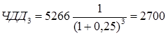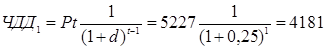 Рассчитываем ЧДД на основе следующих данных: ставка дисконтирования 0,25, результаты от реализации проекта за 5 года (чистая прибыль): 1 год 5227 тыс.руб., 2 год 5203 тыс. руб., 3 год 5266 тыс. руб