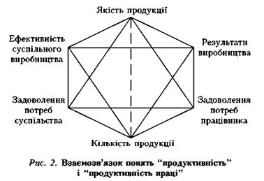 На наш погляд, дуже вдало розкрив різницю між термінами "продуктивність" і "продуктивність праці" Р. В. Гаврилов, який об'єднав ці поняття в одну схему (рис. 2).