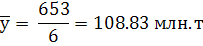 Темпы роста и прироста между 1980 г. и 1981 г. составляют 1 млн. т или 100,9%; между 1980 г. и 1982 г. показатели равны, но при этом соотношение 1981 г. и 1982г. показывает, что темп роста был снижен на 1 млн. т или -0,93 %; между 1980 г. и 1983 г. наблюдается темп роста на 3 млн. т или 2,8%; если же рассматривать 1982 г. или 1983 г., то также наблюдается увеличение на 3 млн. т или 2,8 %; между 1980 г. и 1984 г. также заметен рост на 4 млн.т или 3,7 %, в сопоставлении 1984 г. и 1983 г. виден рост на 1 млн.т или 0,9 %.