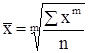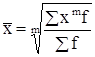 де – степенна середня величина; x– варіанти (значення ознаки одиниць сукупності); n– загальна кількість одиниць сукупності; f– вага, частота, яка показує скільки разів зустрічається те чи інше значення ознаки; m– показник ступеню середньої; Σ – знак суми.