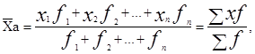 Середня арифметична зважена завжди обчислюється тоді, коли окремі значення варіантів у сукупності повторюються кілька разів або коли ряд розподілу значення ознаки несиметричний. При обчисленні середньої арифметичної зваженої за наведеною формулою значення кожного варіанта (ознаки кожної одиниці сукупності) слід помножити на відповідну йому вагу (частоту або повторюваність кожного варіанта) і суму цих добутків поділити на суму частот (загальну кількість одиниць сукупності). При цьому перемноження значень ознак сукупності на кількість їх повторювання в сукупності (тобто варіантів на ваги) називається зважуванням, а одержана середня величина – зваженою.