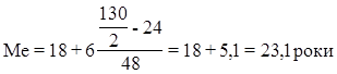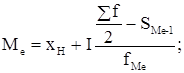 За даними табл. 9 розмах варіації дорівнює 4 особам (5 – 1); за даними, які застосовані для розрахунку медіани, – 20 рокам (35 – 15). Це ще раз підтверджує висновок про те, що розмах варіації істотно залежить від значень ознаки і дає лише приблизну характеристику наявності коливань ознаки в сукупності.