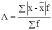 де: Λ – середнє лінійне відхилення; x – значення ознаки; – середнє значення ознаки; f – частота (вага) кожного варіанта.