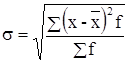де: σ–середнє квадратичне відхилення; x – значення ознаки; – середнє значення ознаки.
