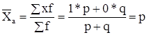 Кількісно варіація альтернативної ознаки виражається двома значеннями: наявність ознаки позначається через одиницю, а її відсутність – нуль. Позначивши частку одиниць, які мають дану ознаку через р, а одиниці, які не мають цієї ознаки через q= (1 – р), визначимо середню арифметичну альтернативної ознаки. Вона буде дорівнювати: