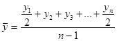 Средний уровень интервального ряда динамики в случае равенства этих интервалов определяется по формуле
