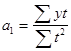 методом наименьших квадратов отклонений выравненных (трендовых) уровней ряда от фактических. Если показатель времени обозначается так, что Σt=0 (-2, -1, 0, +1, +2 и т.д.), то параметры исчисляются по формулам:
