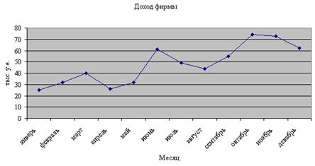 Таким образом, с вероятностью 95% можно утверждать, что в январе 2009 г. доход фирмы составит от 62.09 тыс. у. е. до 77.75 тыс. у. е.