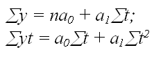 = 24.92. Тогда уравнение будет иметь вид: = 24.92+4.5*t.