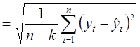 - стандартная ошибка оценки прогнозируемого показателя для числа параметров модели, равного двум;